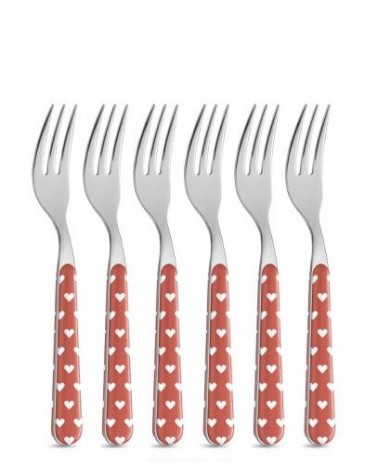 Set 8 Pieces Shabby Chic Dessert Cutlery - Red Hearts